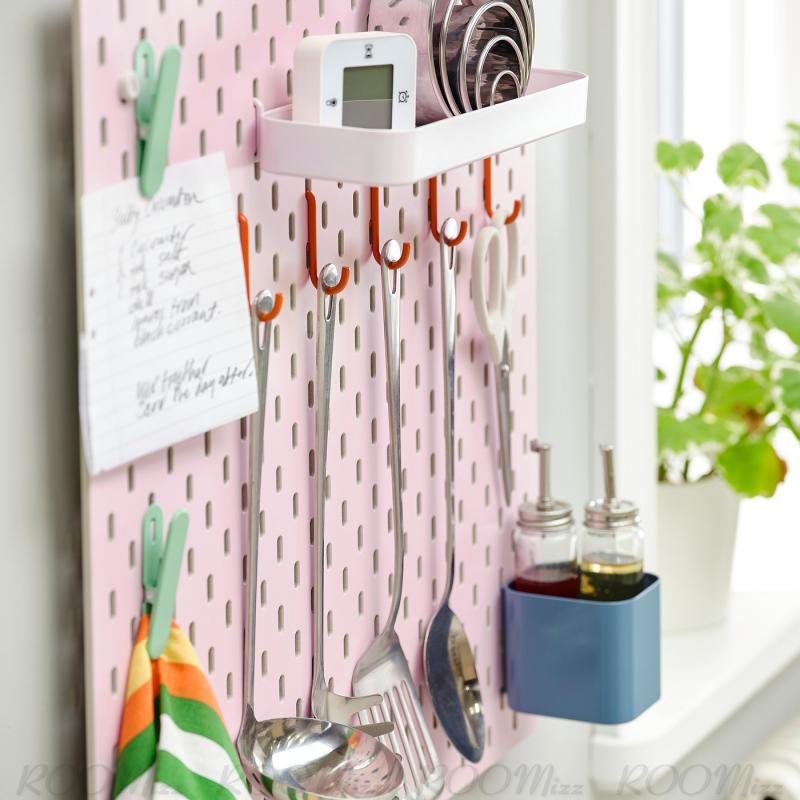 SKÅDIS/スコーディス 有孔ボードに、SKÅDIS/スコーディス アクセサリーを追加して、ものをすっきり整理整頓しましょう。 自分のニーズに合わせてお気に入りのアイテムを手近な場所に収納できる優れたウォール収納です