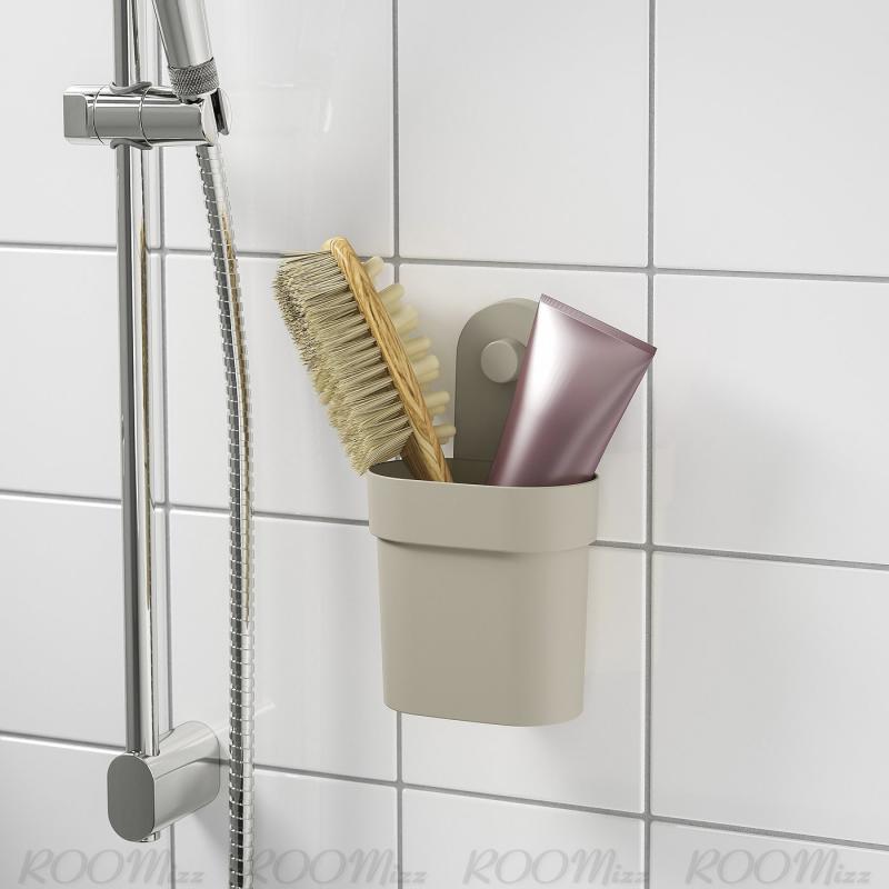 見えない場所に吸盤が付いたÖBONÄS/オボーネス ウォールオーガナイザーなら、壁に穴をあけずに収納を設置できます。 シンプルなデザインとなめらかな丸い角、グレーベージュの色合いが、落ち着いたモダンな印象です