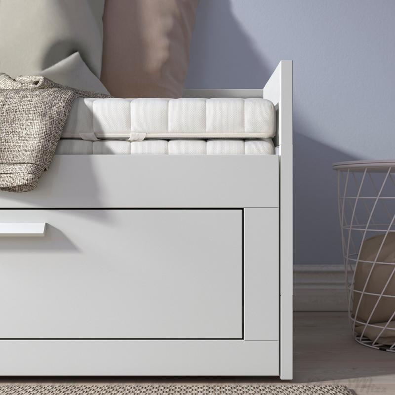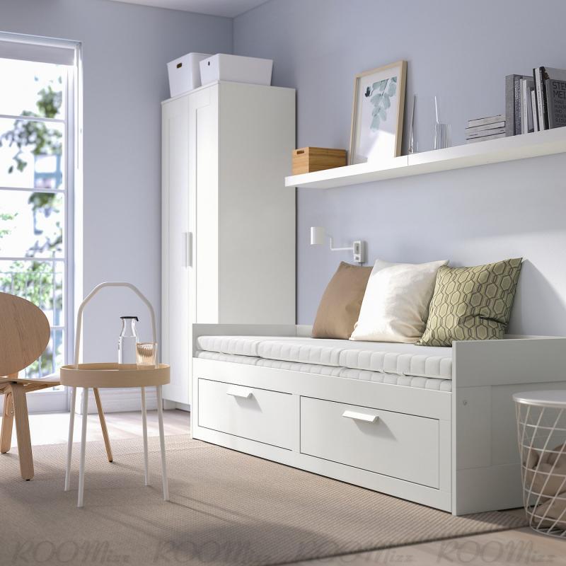 BRIMNES ブリムネス デイベッド 引き出し2/マットレス2付き - ホワイト/オンフェレット かため 80x200 cm