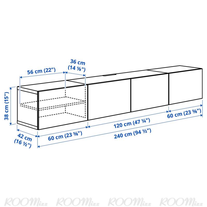 BESTÅ ベストー テレビ台 扉付き - ブラックブラウン/ラップヴィーケン ブラックブラウン 240x42x38 cm
