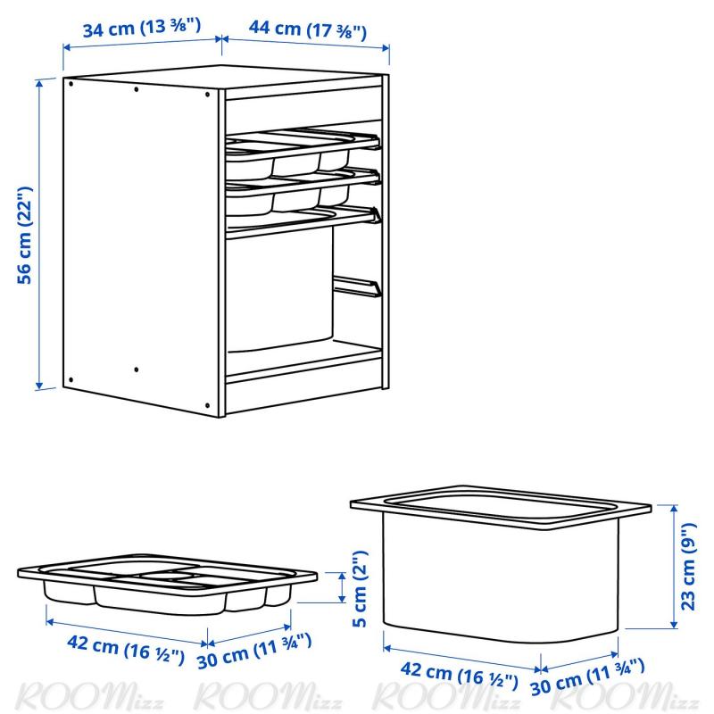 TROFAST トロファスト 収納コンビネーション ボックス/トレイ付 - ホワイト ホワイト/ライトブルー 34x44x56 cm