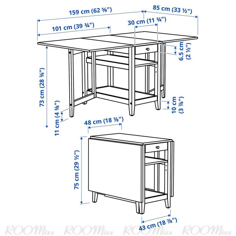 NÄSINGE/ネースィンゲ ダイニングシリーズは、新たなファームハウスの魅力にモダンな機能性を融合させました。 この多機能なゲートレッグテーブルは、ハードウッド材突き板の天板と便利な収納スペースを備え、広げると2~4人用のテーブルになります