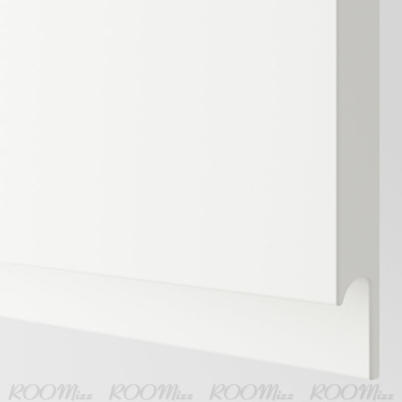 METOD/メトード キッチンシステムなら、理想のキッチンづくりに無限の可能性があります。取っ手が一体型のマットホワイトのVOXTORP/ヴォックストルプ 扉&引き出し前部を組み合わせれば、モダンなミニマリストスタイルに