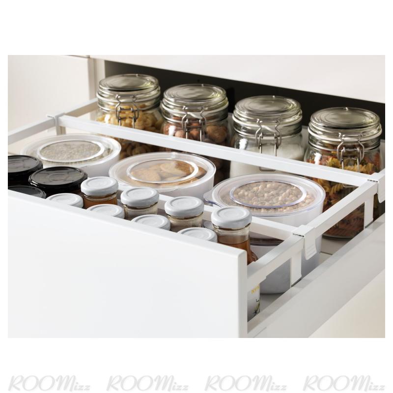 ベースキャビネットとハイキャビネットの引き出しは奥まで引き出せるので、中身が見やすく、出し入れも簡単です