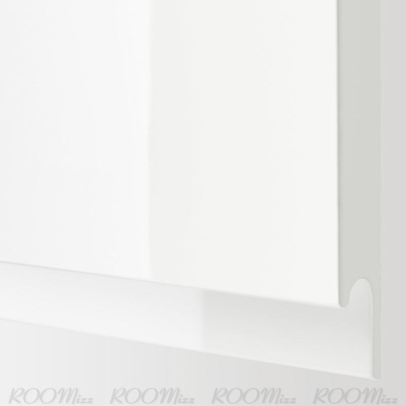 METOD/メトード キッチンシステムなら、理想のキッチンづくりに無限の可能性があります。取っ手が一体型のハイグロスホワイトのVOXTORP/ヴォックストルプ 扉&引き出し前部を組み合わせれば、モダンで広々とした印象に