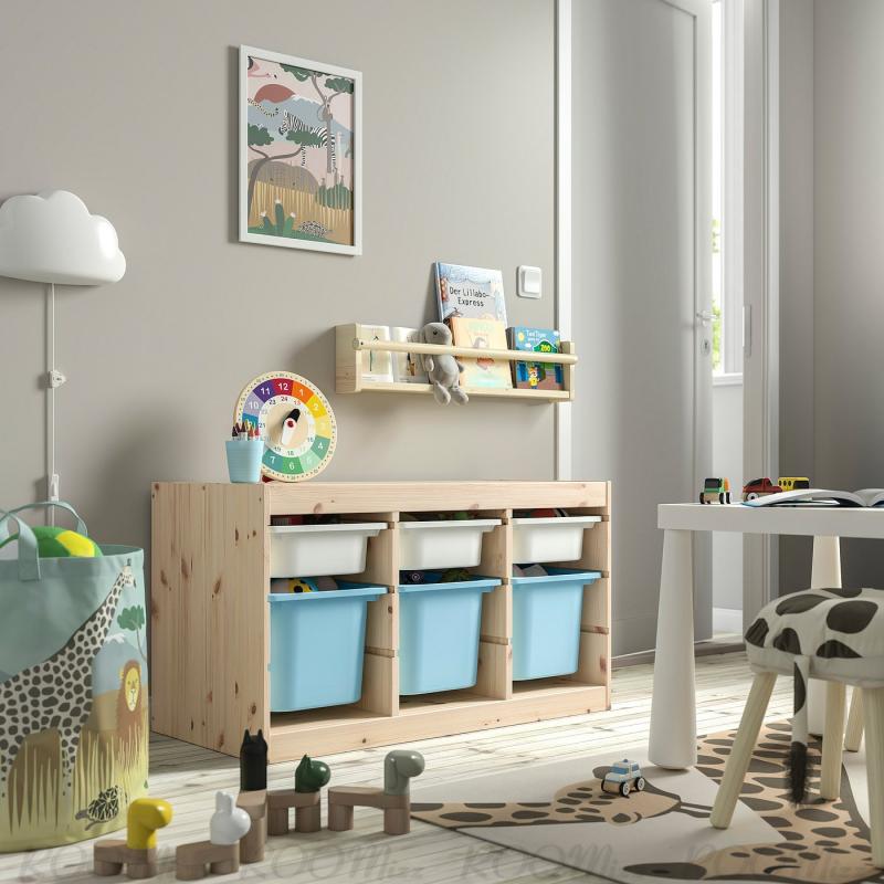 TROFAST トロファスト 収納コンビネーション - ライトホワイトステインパイン ホワイト/ライトブルー 93x44x53 cm