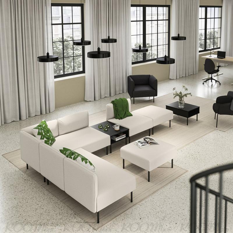 モジュールはどの側面も同様の美しい仕上げなので、ソファを壁際に置くことも、部屋の真ん中に置くこともできます