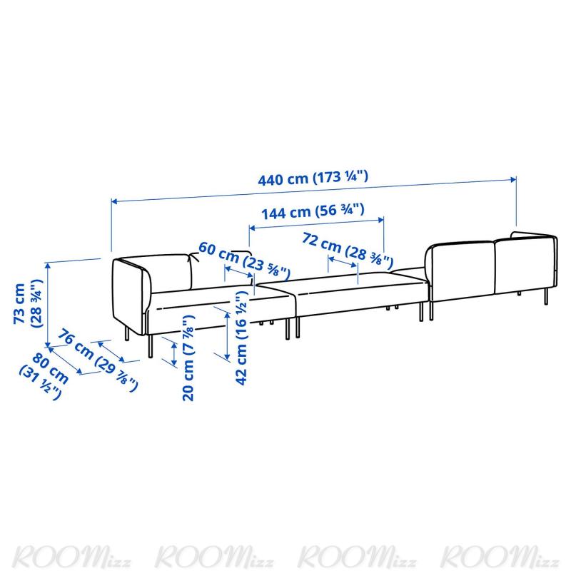 モジュールはどの側面も同様の美しい仕上げなので、ソファを壁際に置くことも、部屋の真ん中に置くこともできます