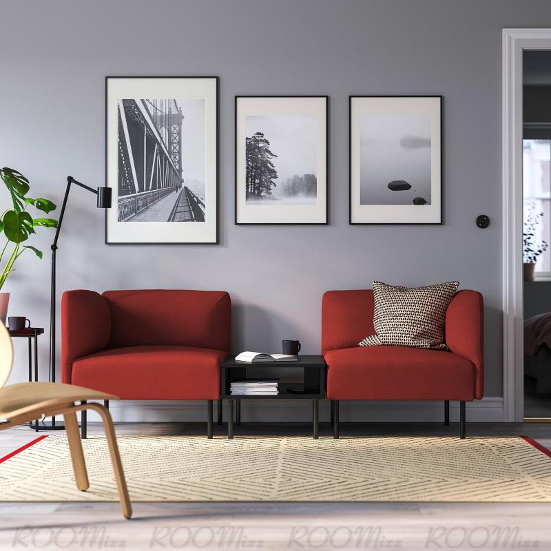 LILLEHEM リレヘム 2人掛けモジュールソファ サイドテーブル付き - グンナレド/ブラウンレッド メタル