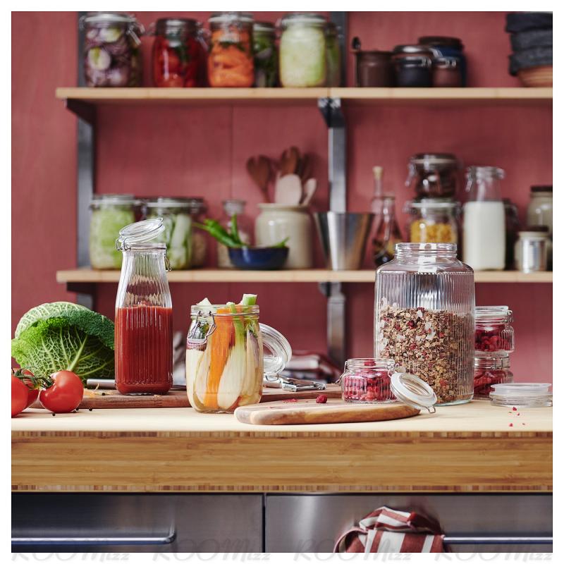 夏の風味と香りを長く保存しましょう。 密閉性の高いふたが付いたストライプガラスのボトル型容器は、ジュースやオイル、野菜のピクルス、ベリーの保存食などに最適です