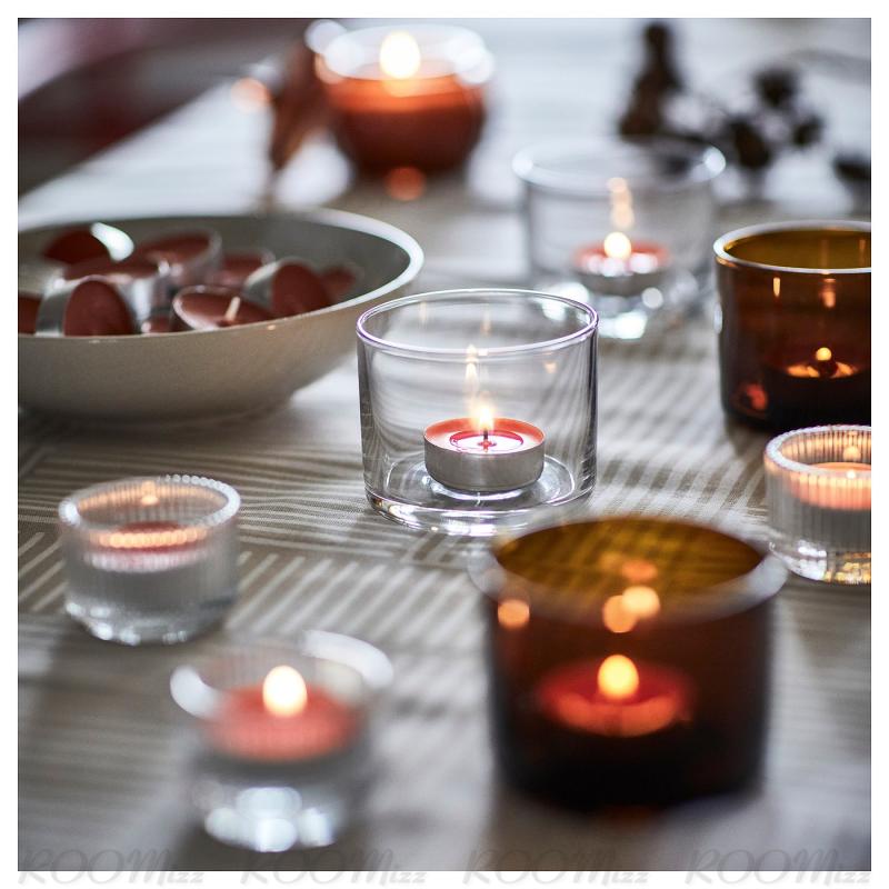 ブラウン、ブルー、クリアのガラス製キャンドルホルダーで、秋の夜長を明るく照らしましょう。 1個だけ置くのはもちろん、違う色を組み合わせておしゃれな光のコラージュをつくるのもおすすめです