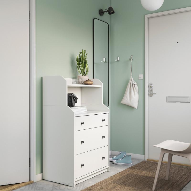 HAUGA ハウガ チェスト(引き出し×3)棚板付き - ホワイト 70x46x116 cm