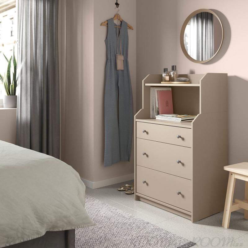 HAUGA ハウガ チェスト(引き出し×3)棚板付き - ベージュ 70x46x116 cm