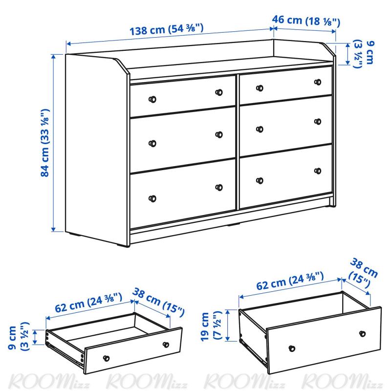 セット内容:ベッドサイドテーブル2個、チェスト(引き出し×6)1台