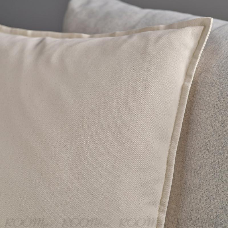 無漂白の綿100%のクッションカバー。 イケアの模様入りのクッションやほかの無地のクッションとコーディネートできます。大きいサイズのクッションがあると、ベッドでとても快適に読書が楽しめます
