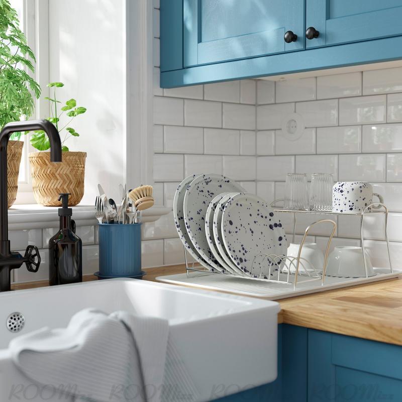 調理中にキッチンツールをワークトップの上に置いておくのに便利です。または、シンクの近くに置いて、洗ったカトラリーを乾かしたり、食器洗いブラシを保管したりするためにも使えます