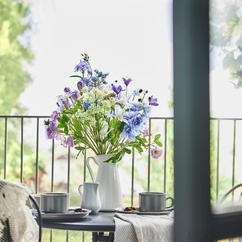 毎日の暮らしに彩りと植物を! 素材のプラスチックには、リサイクルプラスチックが50%以上含まれています。造花のブーケは家の中で毎日咲き続け、ホリデーディナーから月曜の朝食まで、あらゆる食卓を彩ります