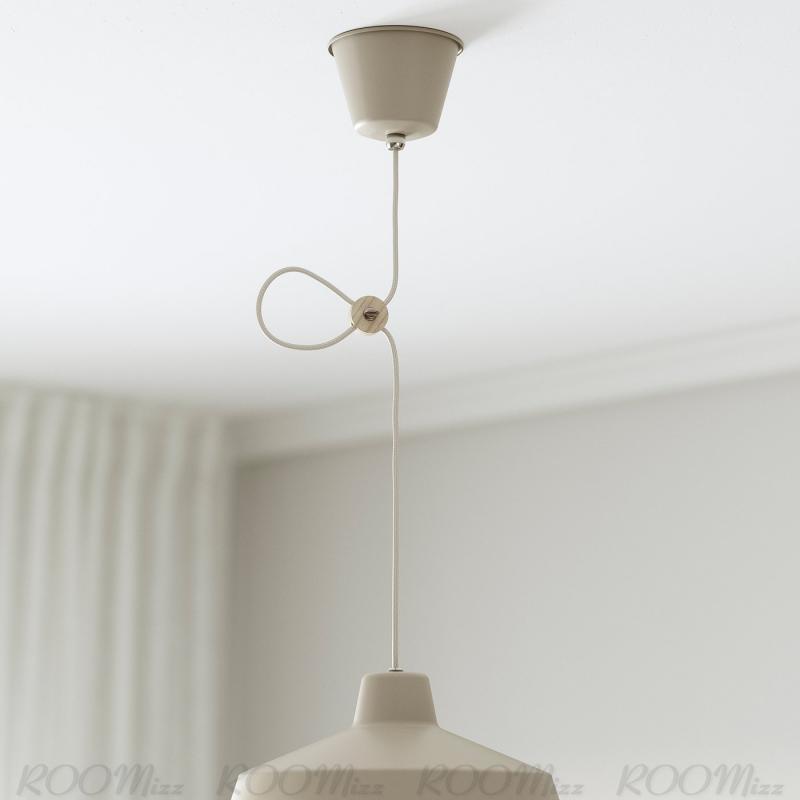 昔の靴屋のランプをインスピレーションにした、とてもノスタルジックなデザイン。 金属製のシェードとアッシュ無垢材製のコードアジャスターが付いたペンダントランプは、ダイニングテーブルの上にちょうどいい高さでつり下げるのも簡単です