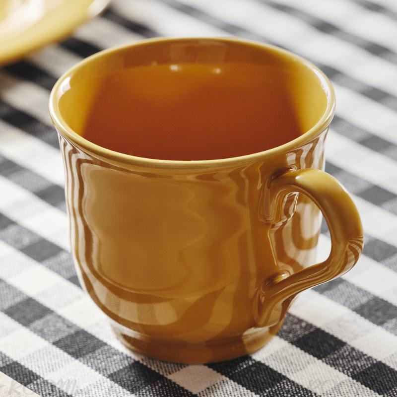 SANDSKÄDDA/サンドシェーッダ 食器は落ち着いたイエローで、温かみのある素朴な手づくり感が魅力です。トラディショナルな雰囲気のテーブルコーディネートを演出します。 家族や友だちとテーブルを囲むあらゆるシーンにぴったりです