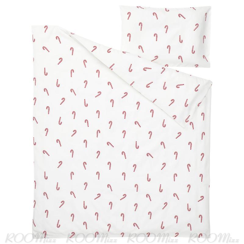 LÖVSÅNGARE ローヴソンガーレ 掛け布団カバー&枕カバー1枚 ベビーベッド用 - キャンディーケーン模様 110x125/35x55 cm