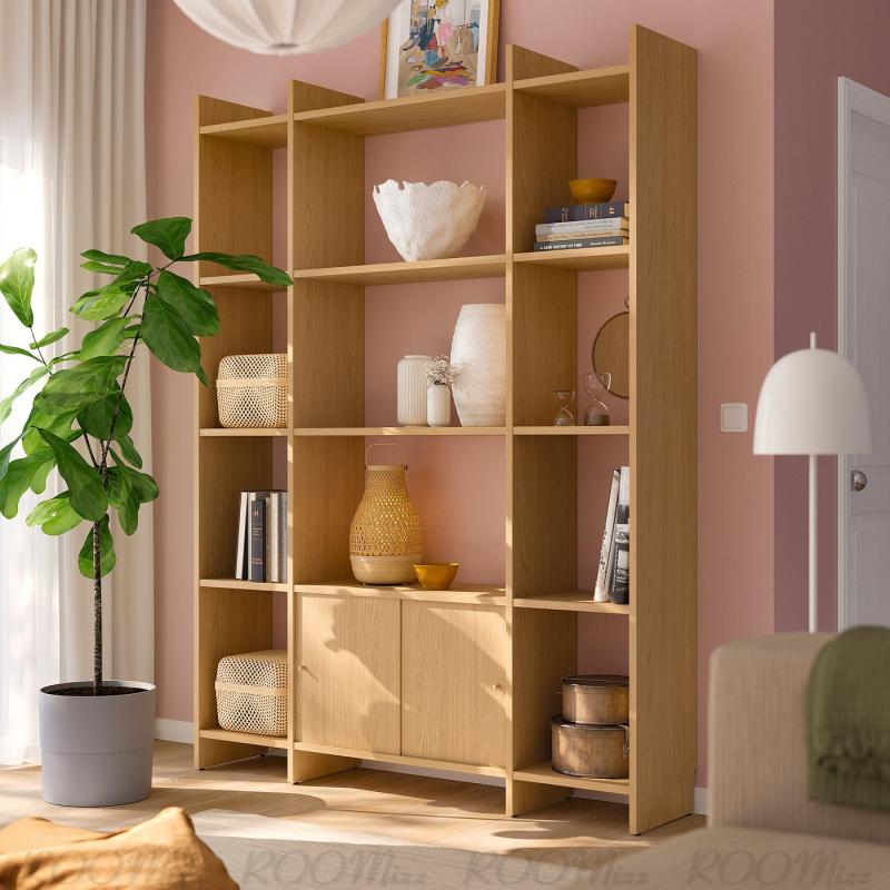 LÅDMAKARE ロードマカレ 収納コンビネーション 引き戸付 - 棚付き/オーク調 158x35x212 cm