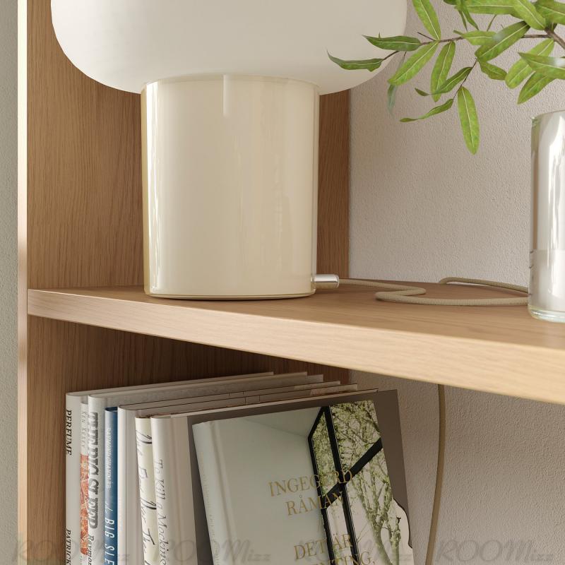設置スペースに合うLÅDMAKARE/ロードマカレ 棚板の幅を選んで、いろいろなディスプレイ収納を楽しみましょう。 サイドパネルとミドルパネルよりも少し奥行きが狭くなっているので、棚板の後ろからケーブルを通せます