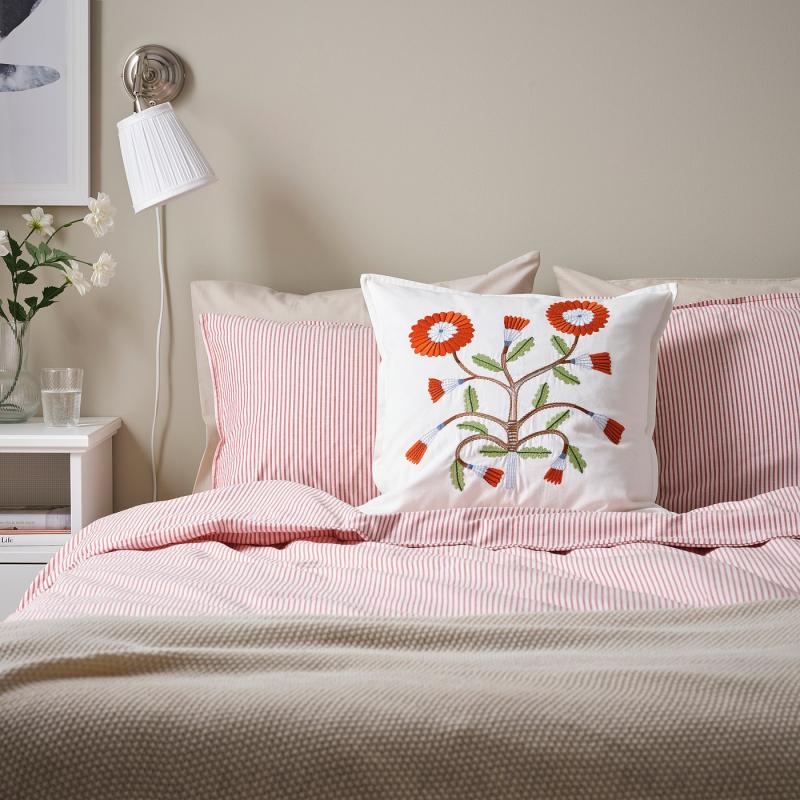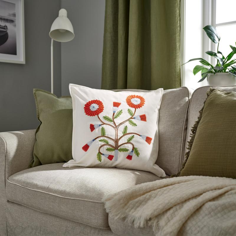 刺繍をあしらった綿のFACELIOR/ファセリオール クッションカバーは、Eva Lundgreenによるデザインで、スウェーデンの伝統的な手工芸がインスピレーションになっています。 具象的な花模様が室内を魅力的に彩り、フォークロアの雰囲気を演出します