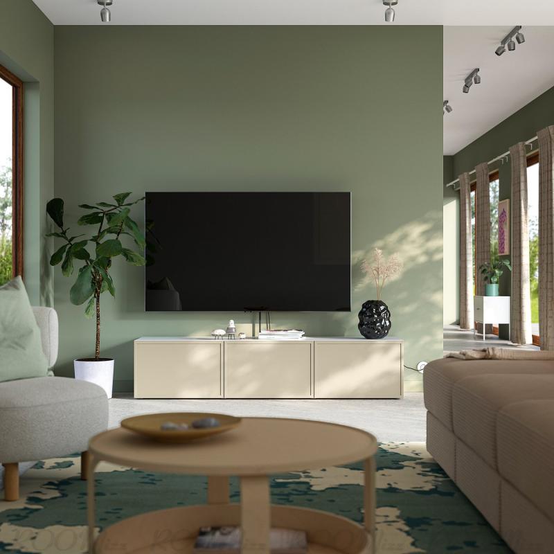 スマートなのはテレビだけではありません! BESTÅ/ベスト― テレビ台はコンテンポラリーなルックスに実用的な機能を組み合わせました。収納スペースを十分に確保できるうえ、目ざわりでホコリが付きやすいケーブルからも解放されます