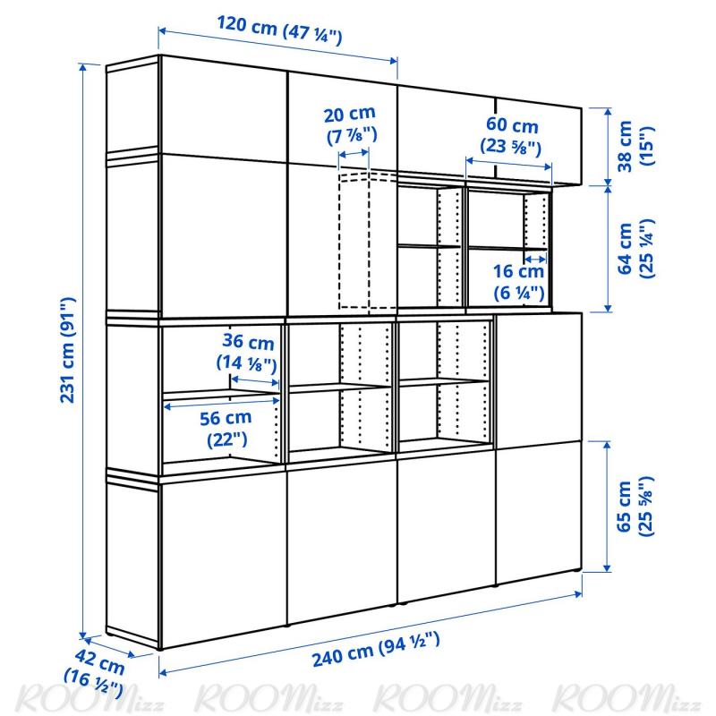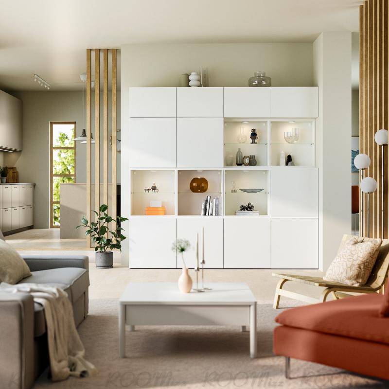 BESTÅ ベストー 収納コンビネーション 扉付 - ホワイト/ラップヴィーケン ホワイト 240x42x231 cm