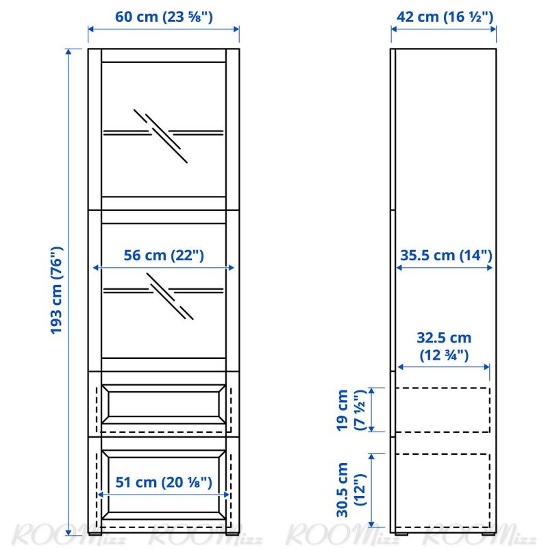 BESTÅ ベストー 収納コンビネーション ガラス扉付き - ダークグレー ラップヴィーケン/フェルスヴィーク チャコール 60x42x193 cm