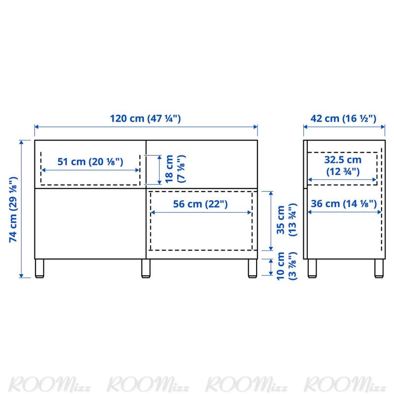 BESTÅ ベストー 収納コンビネーション 扉/引き出し付き - ブラックブラウン/クルークマカーレ ダークグレーグリーン 120x42x74 cm