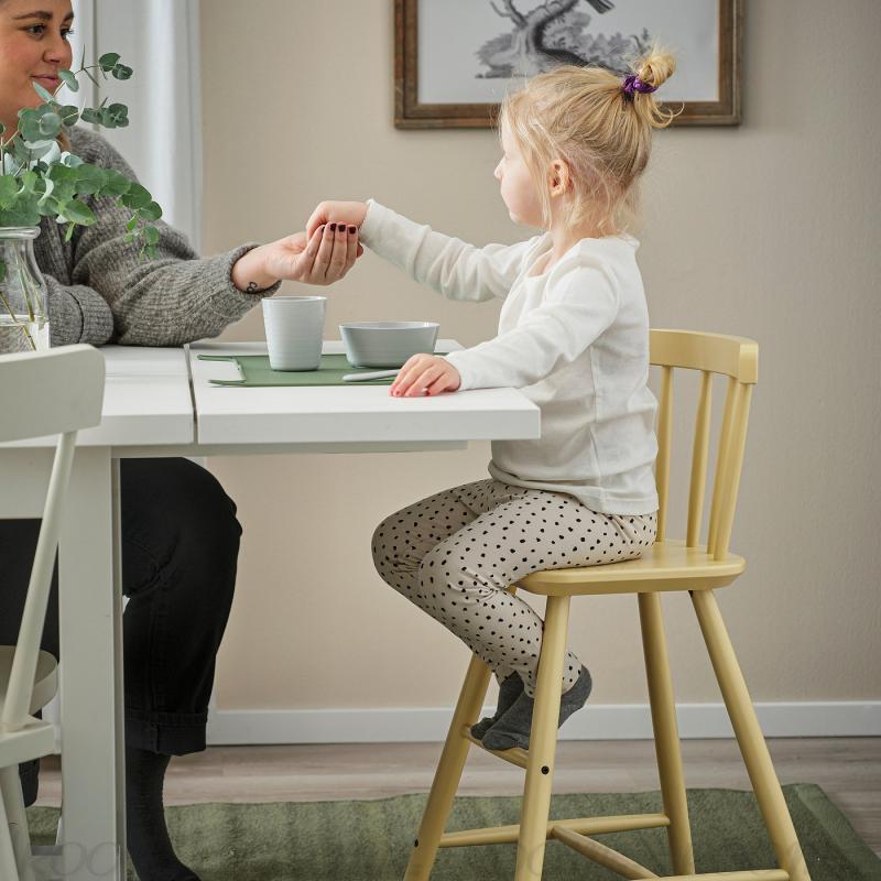 ハイチェアでは小さすぎるけれど、大人用のチェアはまだ早い? そんなときにおすすめなのが子ども用チェア。ダイニングテーブルにぴったりの高さで、足置きバー付き。ディナーや工作が快適に楽しめます