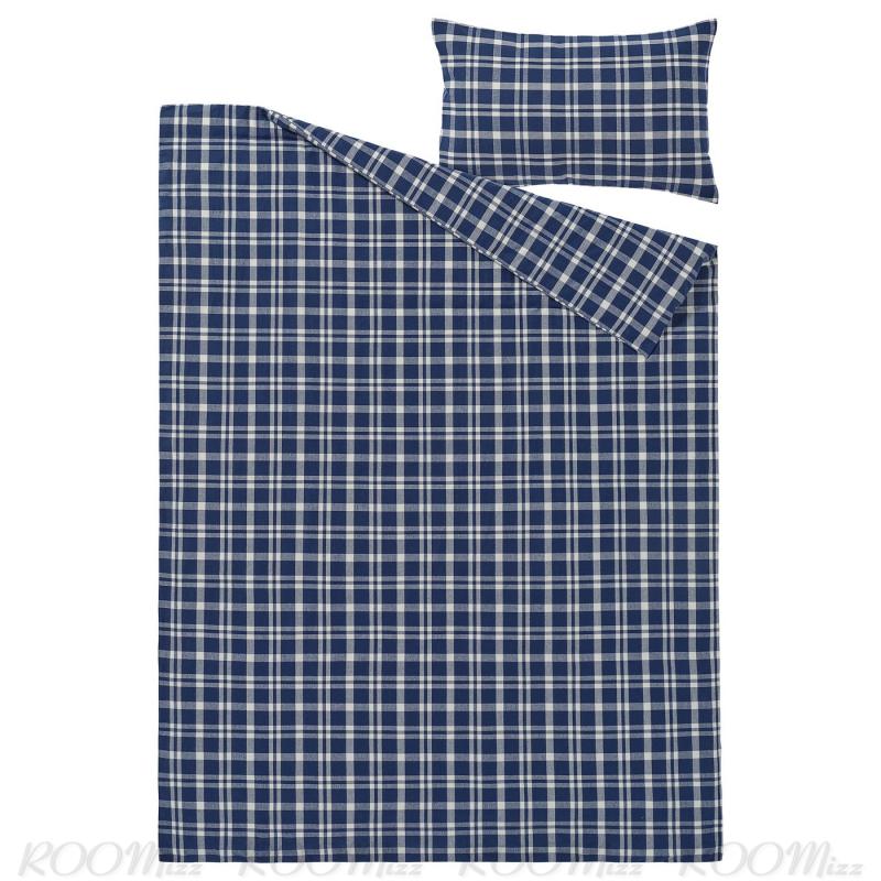 TORNTUSS トルントゥス 掛け布団カバー&枕カバー - ダークブルー/チェック 150x200/50x60 cm