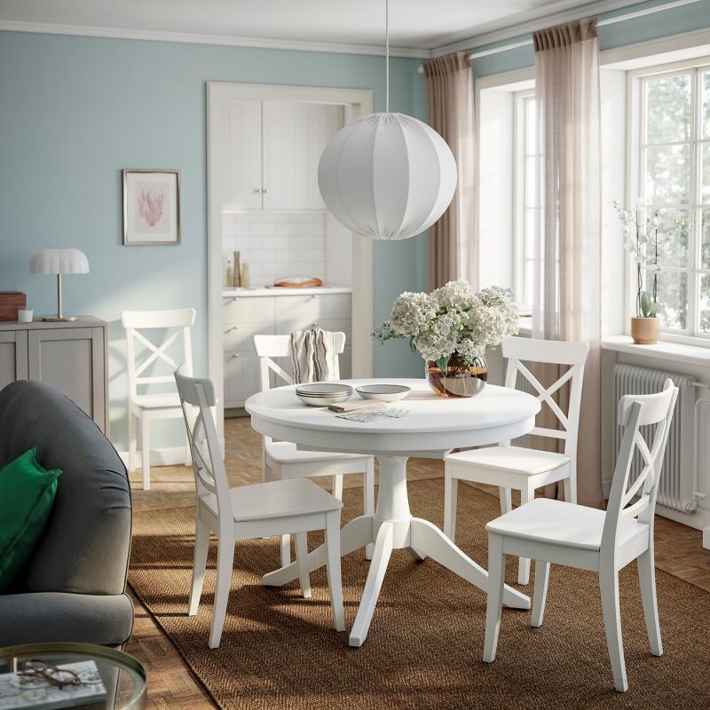 ROSENTORP ローセントルプ / ROSENTORP ローセントルプ テーブル&チェア4脚 - ホワイト/ホワイト 110/155 cm