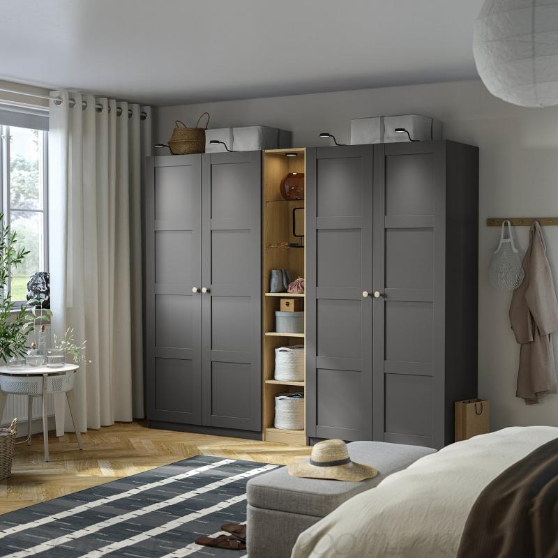 PAX/パックス プランナーを使えば、照明付きのワードローブ コンビネーションも簡単に作成できます。照明を選ぶと、設置に必要なアクセサリー類をプランナーが導き出します