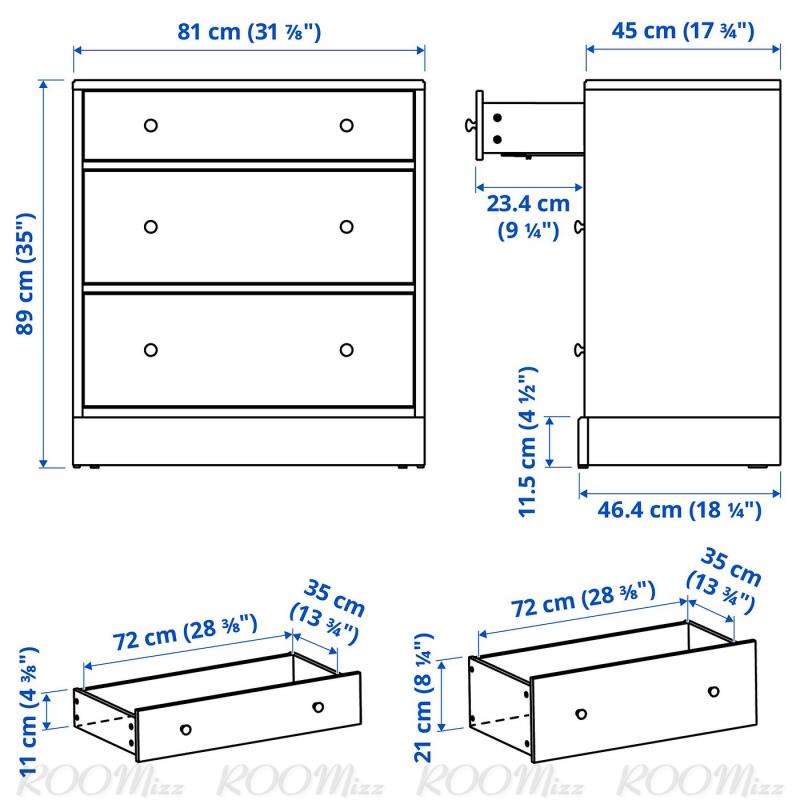 HAVSTA ハーヴスタ チェスト(引き出し×3) - ブラック 81x47x89 cm