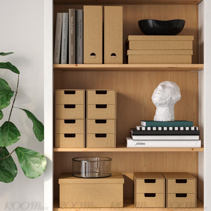 GÄRDESGÅRD/イェルデスゴルド シリーズのアイテムは手軽に組み合わせられるうえ、高さをそろえやすいので、本棚に並べたときにすっきりとした印象です