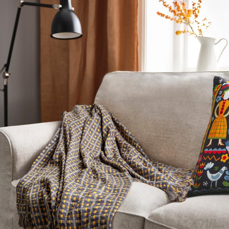 FLIKBRUNÖRT フリクブルンオルト ブランケット - チェック模様 130x170 cm