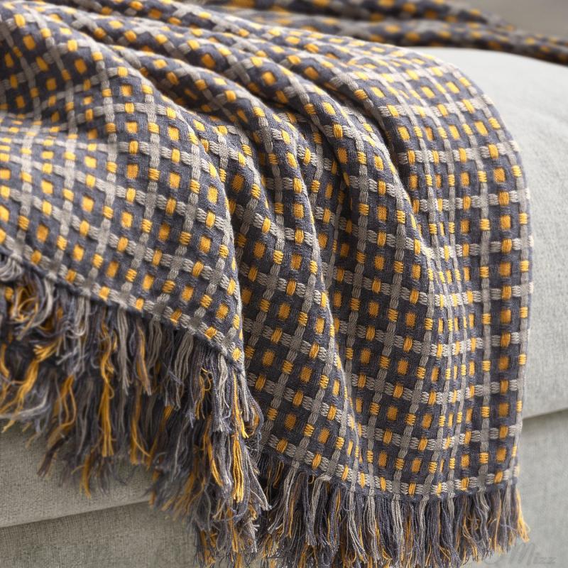 このイエローとグレーのドビー織りの繊細な質感のブランケットは、シンプルな手織りの雰囲気があり、伝統的な魅力が楽しめます。 お好みでいくつかクッションを組み合わせれば、ソファに完ぺきな心地よさを演出できます