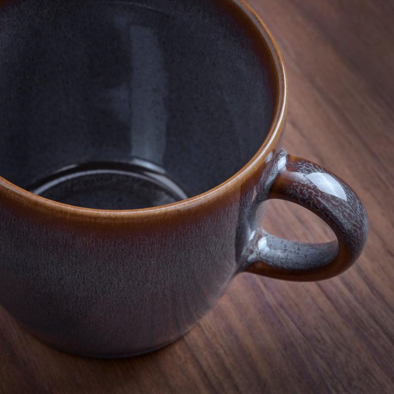 釉薬が反応し合いひとつひとつのマグにハンドメイドならではの独特の風合いをもたらしており、自然な仕上がりで製品の魅力を引き立てます