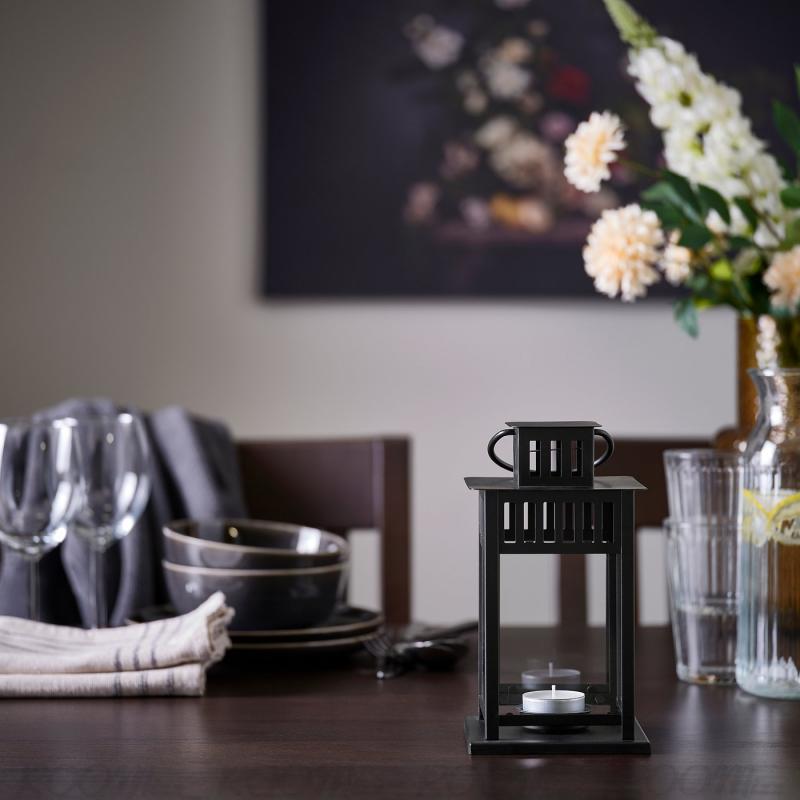BORRBY ボッルビー ティーライト用ランタン - 室内/屋外用 ブラック 20 cm