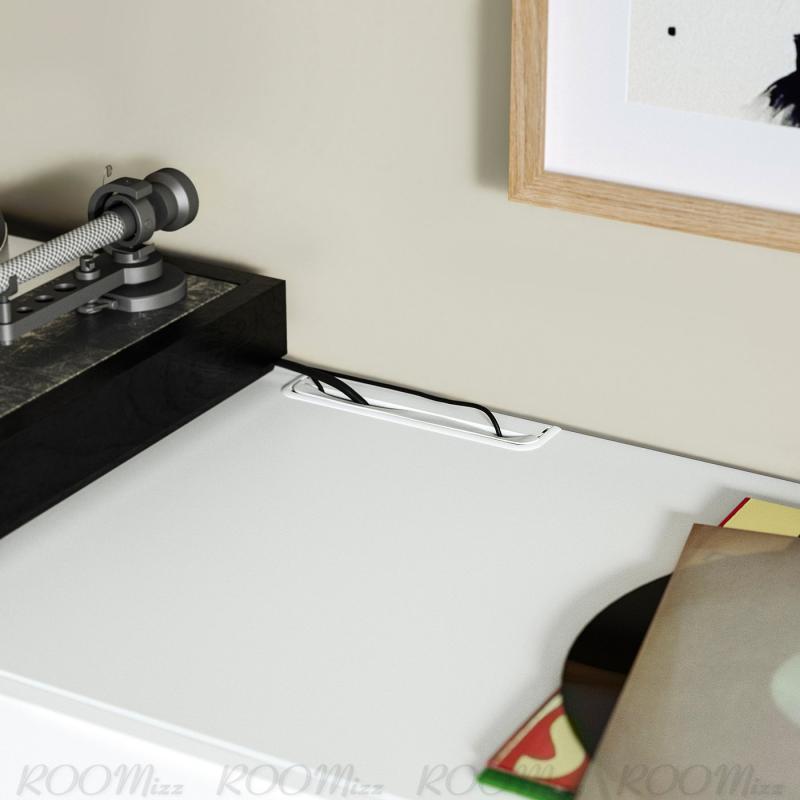 スタイリッシュで実用的な収納。コードをすっきり整理できる配線口付き。 ホワイトの扉&引き出し前部は明るくシンプルでモダンな印象をつくります。 家の中のどの部屋にもぴったり!