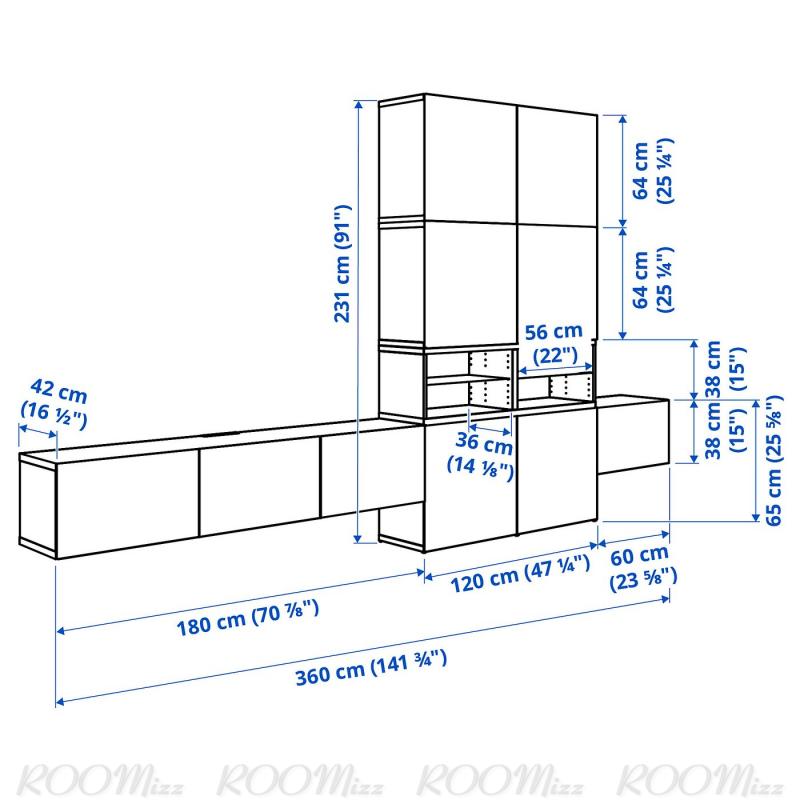 BESTÅ ベストー メディア収納コンビネーション - ホワイト/ラップヴィーケン ホワイト 360x42x231 cm