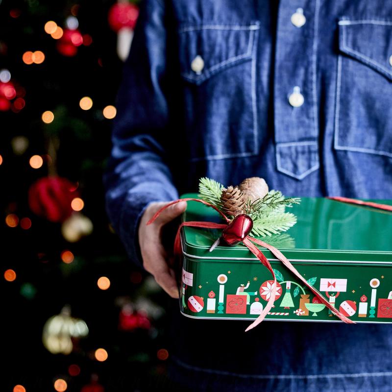 このクリスマスらしい雰囲気の缶は、クッキーやキャンディ、または小さなアイテムなどを入れるのに最適。 おいしいものを詰めて、プレゼントにするにもぴったりです