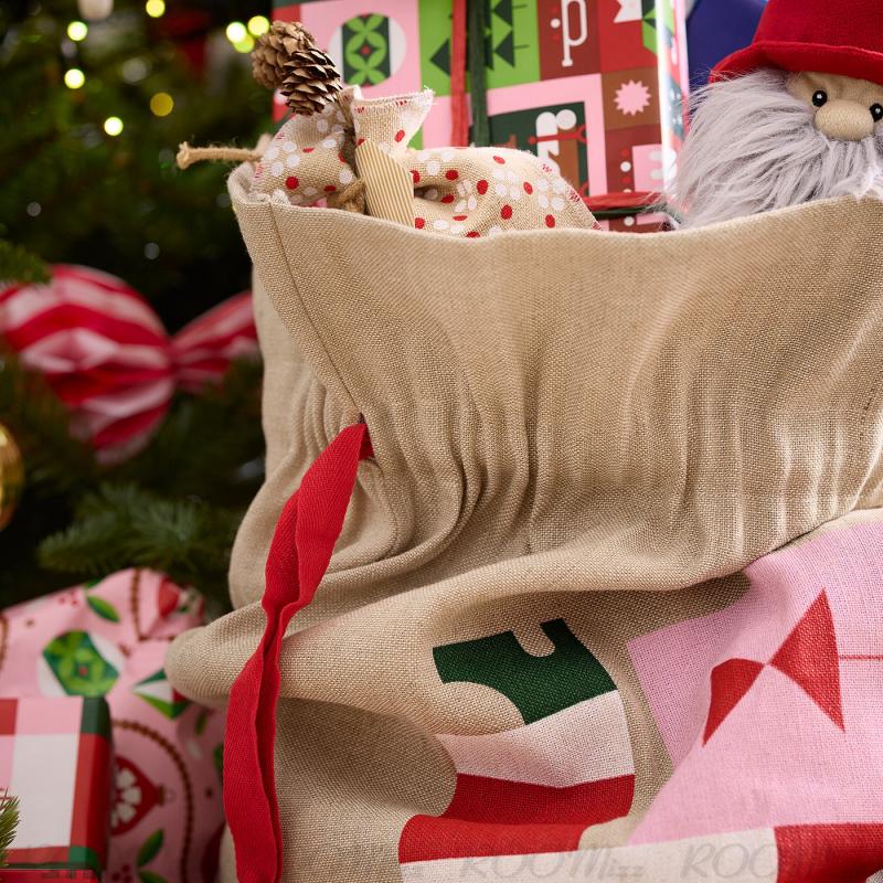 もらったプレゼントをワクワクしながら開ける時間と、プレゼントがぎっしり詰まったサンタの袋は、子どもが何よりも大好きなもの。 耐久性のあるジュートを使い、美しいモチーフをあしらった巾着袋は、何年も夢のような最高の時間を演出します