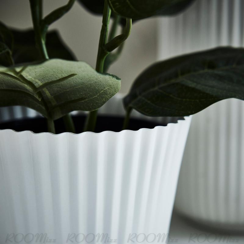 ホワイトのVINTERFINT/ヴィンテルフィント 鉢カバーは、耐久性のあるスチール製で、プリーツが柔らかで魅力的な印象を演出します。サイズは2種類からお選びいただけます。 テーマに合わせてほかのデコレーションと手軽に組み合わせられます