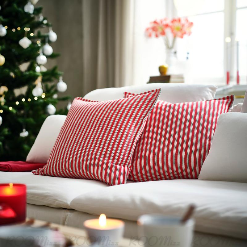 VINTERFINT ヴィンテルフィント クッションカバー - ストライプ レッド/ホワイト 50x50 cm