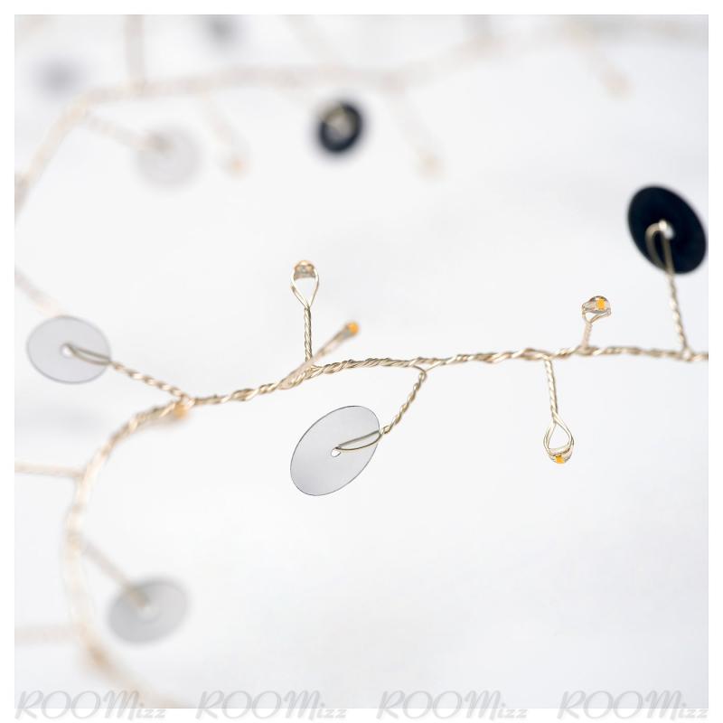 ライトチェーンは、テーブルまわりをぐっと華やかな雰囲気に演出するディテールです! このライトチェーンにはシルバーカラーの小さな円盤状の飾りが付いていて、LEDの光が反射すると美しくきらめきます。 電池式です