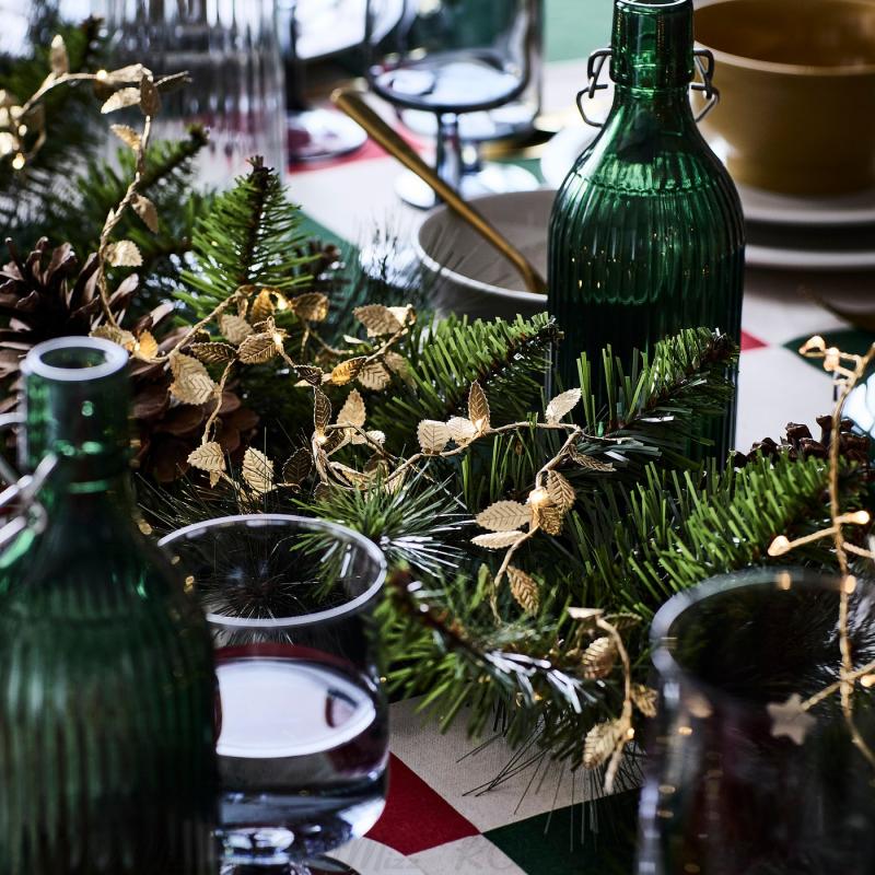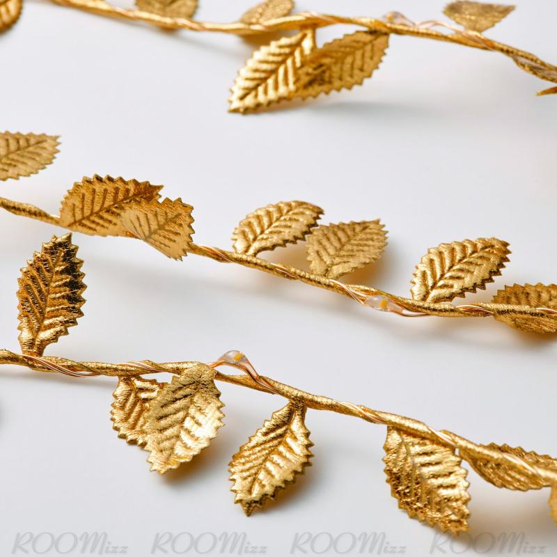 小さなLEDとゴールドカラーのリーフが付いているこの電池式のLEDライトチェーンは心地よい光を放ち、ダイニングテーブルや家の中を輝かせます