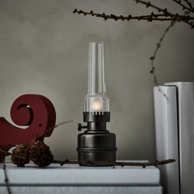 古いケロシン(灯油)ランプのような形ですが、温かみのある光は本当の炎を模したものです。 このLEDランプは電池式なので、より安全に空間を照らせます。窓台やダイニングテーブルに置くのにぴったりです